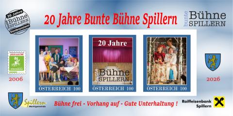 20 Jahre Bunte Bühne Spillern - dieses Jubiläum wird zum Anlass genommen, gemeinsam mit dem Briefmarkensammlerverein (BSV) Stockerau "Philafreunde2000", Leitung Wolfgang Schneps, ein Sonderpostamt einzurichten.