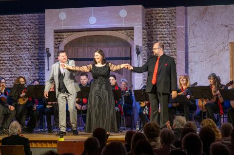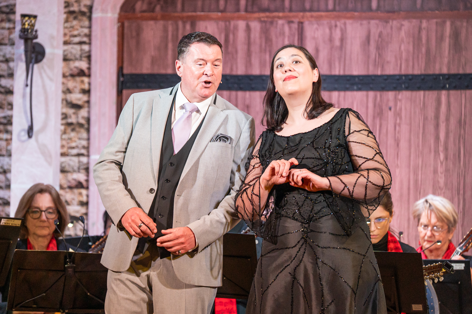 Ein weiterer Höhepunkt des Abends waren die gesanglichen Beiträge von Tenor Günter Pilhatsch und Sopranistin Katharina Jing An Gebauer. Mit ihren ausdrucksstarken Stimmen verliehen sie bekannten Werken aus „Don Giovanni“, „Die lustige Witwe“ und „Im weißen Rössl“ neue Frische. Besonders bewegend waren ihre Interpretationen der Klassiker „Granada“ und „Mama“, die beim Publikum für sichtliche Begeisterung sorgten. Die Stimmen harmonierten wunderbar mit dem Orchester und fügten sich nahtlos in das Gesamtbild des Abends ein.